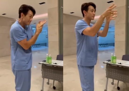비는 18일 자신의 인스타그램을 통해 tvN 새 드라마 '고스트 닥터' 촬영 현장에서 찍은 짧은 영상을 게재했다.