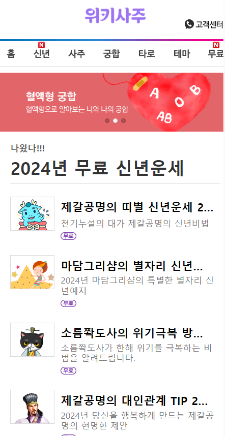 다양한 무료 운세는 위키사주 홈페이지의 '무료' 카테고리에서 이용할 수 있다.