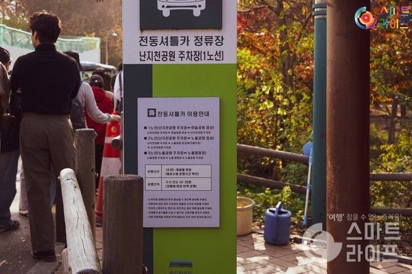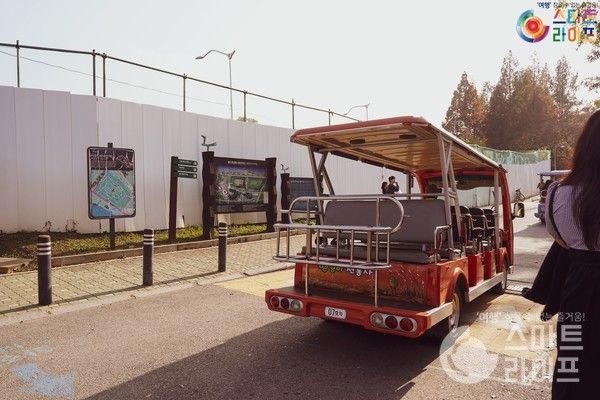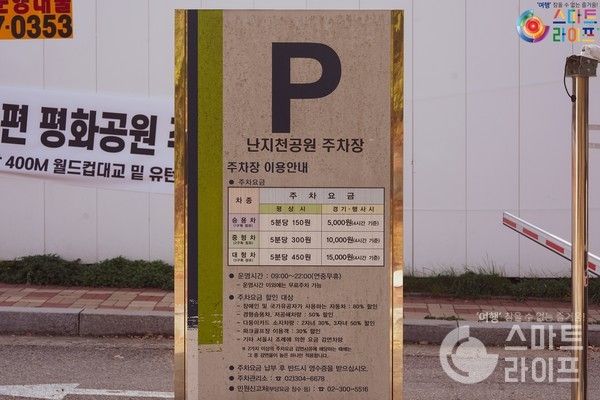 하늘공원 억새축제 주차는 난지천공원 주차장을 이용하면 된다. 하늘공원 지하철은 월드컵경기장역 6호선에서 내리면 된다. 도보 주말에는 자리가 없으니 근처 공영주차장을 이용해도 좋다. 주차장에 내리자마자 보이는 맹꽁이 전동차 열차 타는 곳 표시. 왜냐하면 하늘공원 억새가 있는 장소까진 걸어서 오르막길을 20분 동안 올라야 하기 때문이다.