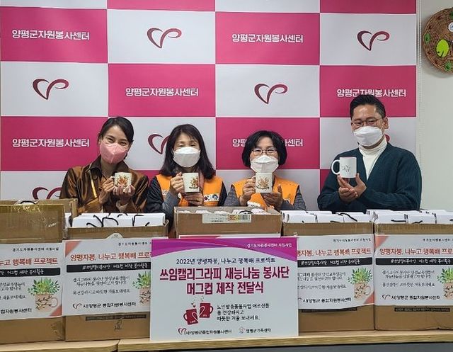 봉사단에서는 올 한 해 동안 진행된 캘리그라피 교육내용을 활용해 자연을 소재로 한 그림과 글씨를 삽입한 머그컵을 제작했으며, 지난 2일 양평가족센터 노인맞춤형 사업 독거어르신들에게 150여 개의 캘리그라피 머그컵을 전달했다.