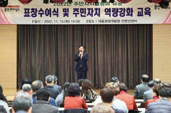 이상일 용인특례시장이 15일 ‘2022 주민자치활성화 유공 표창수여식’에 참석해 표창을 전달하고, 수상자들의 노고를 격려했다.