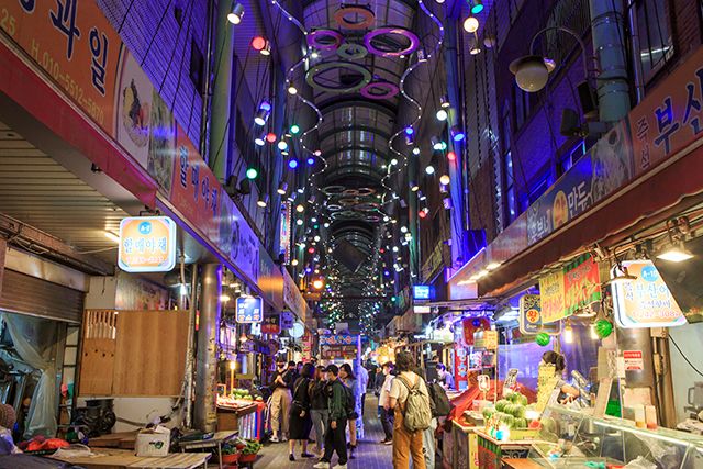시장은 이슥한 시간에도 사람들로 붐빈다. 야시장에서 갖가지 주전부리를 팔기 때문이다. 2013년 국내 최초로 개장한 부평깡통야시장은 주말이나 휴일이면 발 디딜 틈이 없다. 오후 7시30분~11시30분에 서고 연중무휴다(명절 전 임시 휴무).