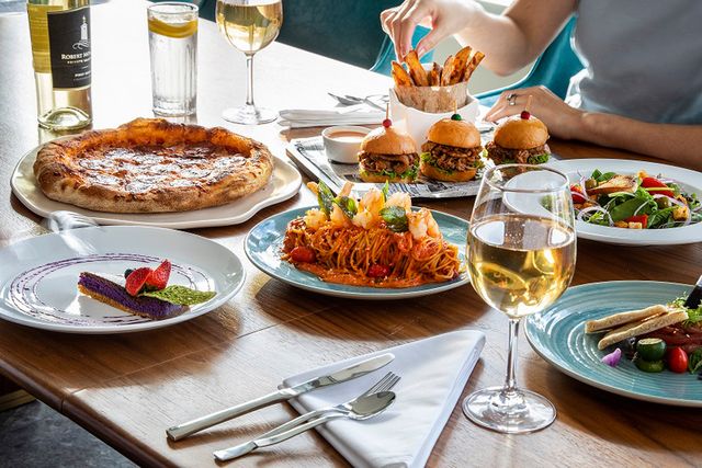 메인 레스토랑인 ‘더 테라스’는 뷔페식으로 현지 음식과 다양한 지역의 요리를 제공하며, 야외 식사 공간인 ‘마켓 플레이스’는 페이스트리, 케이크, 샐러드, 샌드위치, 건강식 등과 함께 시그니처 메뉴인 젤라토 등의 다양한 메뉴를 선보인다.