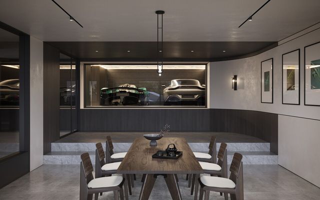 애스턴마틴은 방문객을 위한 주차 공간 등 총 3대의 애스턴마틴 차량을 주차할 수 있는 공간도 확보했다. '오토모티브 갤러리'라고 불리는 차고는 1층 거실에서 보면 주차 공간이 마치 액자에 담긴 사진과 같이 보이도록 설계했다.