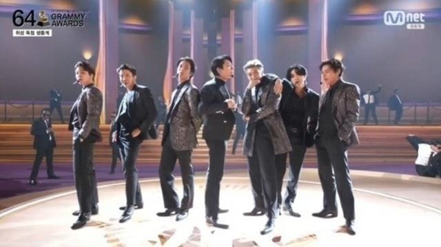 방탄소년단은 지난해 '제64회 그래미 어워드'에서 펼친 퍼포먼스로 "완전히 새로운 차원의 퍼포먼스로 끌어올렸다"는 빌보드의 극찬을 이끌어냈다. /엠넷 방송 캡처