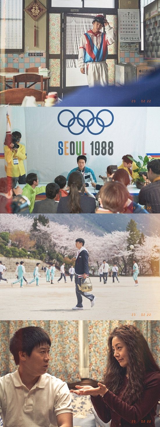 마이웨이 직진 쌤 시헌(진선규 분)의 스틸은 컬러풀한 트레이닝복을 찰떡 같이 소화해 시선을 끄는 한편, 88 올림픽 당시 심각한 표정으로 기자들 앞에 선 모습으로 시헌의 선수 시절 스토리를 향한 호기심을 자극한다.