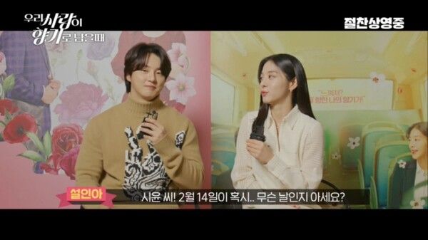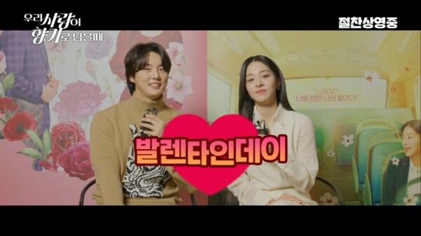 [뉴스컬처 김기주 기자] 2023년 가장 향기로운 커플 탄생을 알리는 영화 '우리 사랑이 향기로 남을 때'가 발렌타인데이를 하루 앞두고, 관객들의 달콤한 추억 쌓기를 응원하는 윤시윤X설인아의 러블리 발렌타인데이 영상을 공개했다.