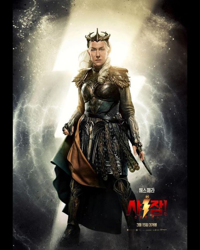관심이 이어지면서, 6일 워너브러더스 코리아는 캐릭터 포스터 4종을 공개했는데요. 각 포스터에서 해당 캐릭터의 다채로운 개성을 확인할 수 있답니다. 예로 주인공 샤잠의 경우 번개를 다루는 능력이 뛰어난 만큼 포스터에서도 해당 성향이 반영돼 있죠. 다음으로, 아틀라스의 딸이자, 예언서 속 첫 번째 여신인 헤스페라의 포스터 역시 그의 명성에 걸맞은 포스를 보여주고 있고요. 칼립소(루시 리우), 앤시아(레이첼 지글러) 포스터 역시 남다른 분위기를 풍겨 영화 팬들의 시선을 사로잡고 있습니다.