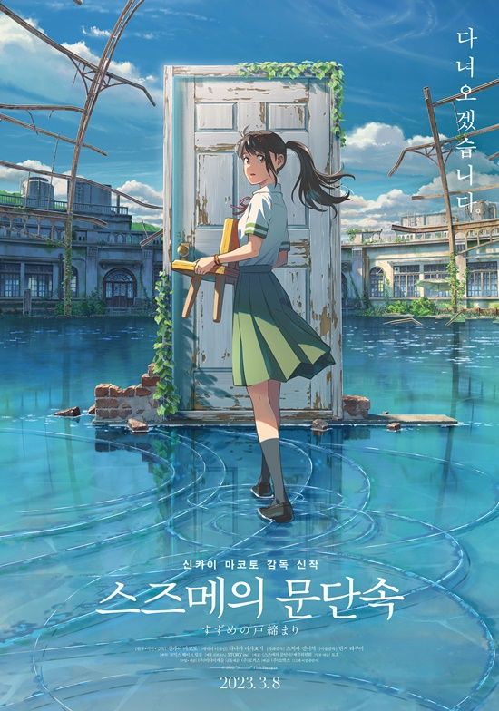 '스즈메의 문단속'은 우연히 재난을 부르는 문을 열게 된 소녀 스즈메가 일본 각지에서 발생하는 재난을 막기 위해 필사적으로 문을 닫아가는 이야기를 담은 영화로 전국 극장에서 상영 중이다.