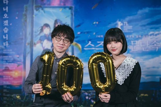이에 신카이 마코토 감독과 주인공 스즈메 역의 목소리 연기를 맡은 하라 나노카가 관객들의 뜨거운 성원에 감사하며 100만 돌파 감사 인증샷을 함께 전했다.