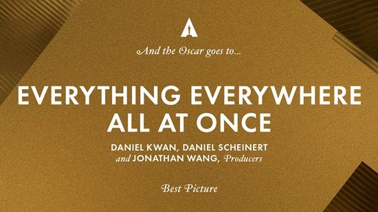 12일(현지시간) 미국 LA 할리우드 돌비 극장(Dolby Theater)에서 열린 제95회 아카데미 시상식에서 '에브리씽 에브리웨어 올 앳 원스'가 작품상, 여우주연상, 감독상, 편집상, 각본상, 여우조연상, 남우조연상까지 무려 주요 부문 7개를 휩쓸며 올해 아카데미 최다 수상, 시상식 무대의 주인공으로 기록됐다.
