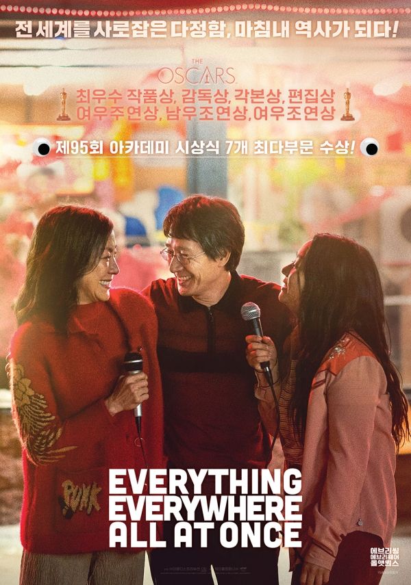 (수입: (주)더쿱디스트리뷰션/ 배급: 워터홀컴퍼니(주)/ 감독: 다니엘 콴, 다니엘 쉐이너트/ 주연: 양자경, 스테파니 수, 키 호이 콴, 제이미 리 커티스 외)가 제95회 아카데미 시상식 7개 부문을 석권하며 세계 영화사에 길이 남을 기념비적인 역사를 써냈다.