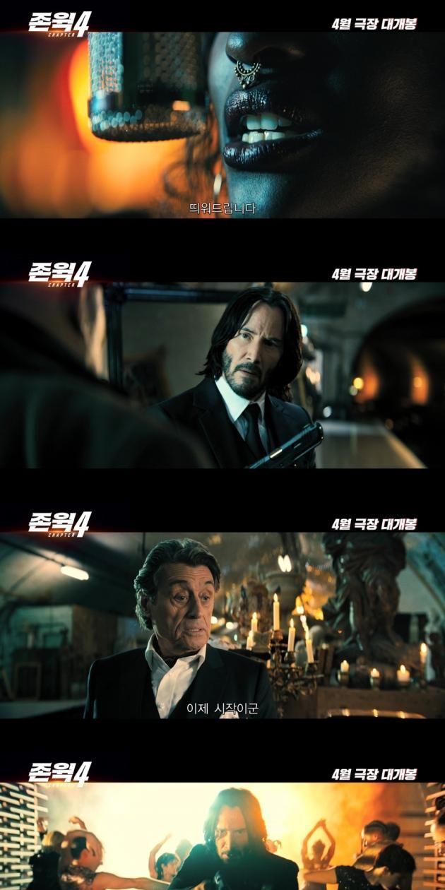 메인 포스터와 함께 공식 예고편에서는 4년을 준비한 '존 윅 4'의 위용이 드러난다. 반가운 얼굴인 새로운 방탄 슈트와 총을 준비하는 존 윅과 킹의 모습 그리고 뉴욕 콘티넨탈 호텔의 지배인 윈스턴이 "이제 시작이군"이라는 대사로 시작되는 공식 예고편은 이후 거침없는 액션으로 몰아치며 예비 관객들을 열광하게 한다.