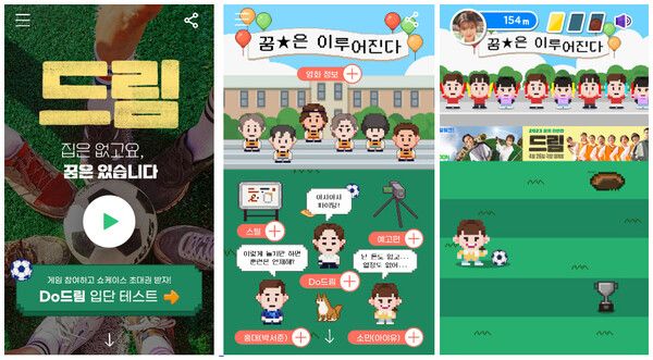 '드림월드'는 영화에 대한 다양한 정보부터 쏘울리스 축구선수 홍대와 열정리스 PD 소민 그리고 홈리스 축구단의 아기자기한 캐릭터까지 다채로운 볼거리로 눈길을 사로잡고 있다. 특히 귀여운 픽셀로 재탄생한 영화 속 캐릭터 중 한 명을 골라 장애물을 피해 달리는 'Do드림 입단 테스트'가 눈길을 끈다. 오는 18일 오후 5시를 기준으로 스코어보드 랭킹 상위 144명에게 VIP 쇼케이스 및 시사 초대권을 증정하는 특별한 이벤트를 마련해 예비 관객들의 적극적인 참여가 이어지고 있다.