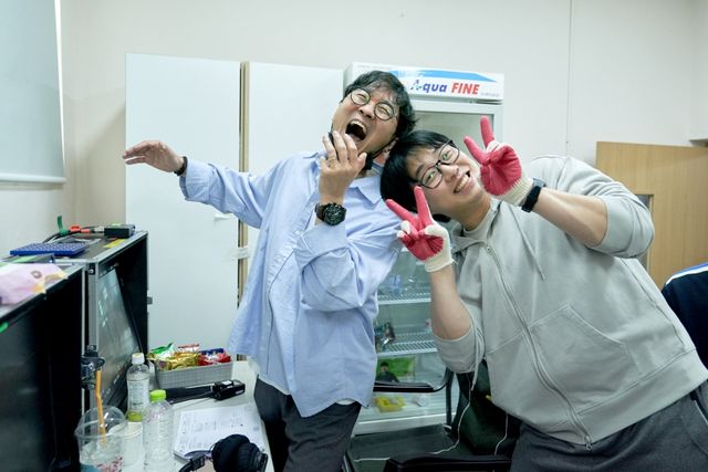 더불어 '리바운드' 촬영 현장에서 장항준 감독과 많은 대화를 통해 '강양현 코치'를 완성한 안재홍은 폭소하는 감독님 옆에서 브이하는 포즈로 러블리한 매력을 더한다.