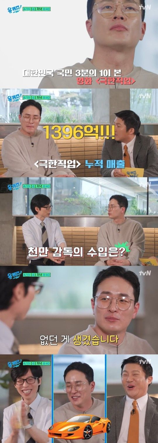 유재석이 "수입이 어마어마했겠다"고 말하자 이병헌 감독은 "없던 게 생겼다"며 슈퍼카를 구매했음을 간접적으로 언급했다.