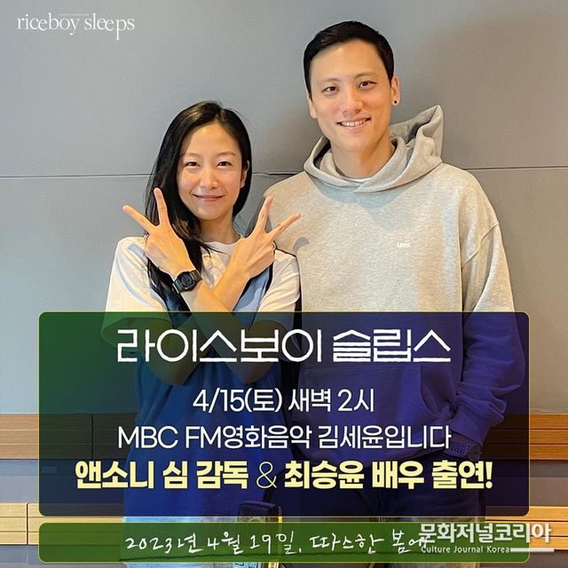 개봉을 앞두고 한국을 찾은 앤소니 심 감독은 최승윤 배우와 함께 다양한 홍보 활동에 참여, <라이스보이 슬립스>의 한국 개봉에 대한 뜨거운 진심을 확인시켰다. 15일(토) 오전 2시에는 김세윤 작가가 진행하는 MBC 라디오 ‘FM영화음악 김세윤입니다’에서 앤소니 심 감독과 최승윤 배우를 만날 수 있다.