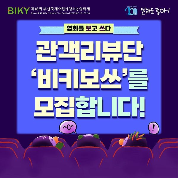 오는 7월 열리는 제18회 부산국제어린이청소년영화제(Busan International Kids and Youth Film Festival, 이하 BIKY)에서 관객 리뷰단 ‘비키보쓰’를 모집한다고 17일 밝혔다.