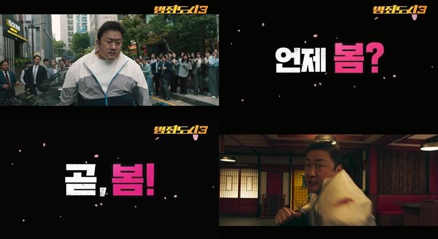이 가운데 이날 공개된 예고편은 '봄'이라는 콘셉트와 함께 1, 2편의 시그니처 장면으로 시작해 눈길을 끈다. 마석도 특유의 유머와 액션에 더해진 "봄?" "다시 봄?" "언제 봄?" "곧 봄!"으로 이어진 재치 있는 극장가 출격 예고는 작품을 향한 궁금증을 한껏 끌어올린다.