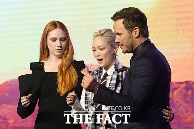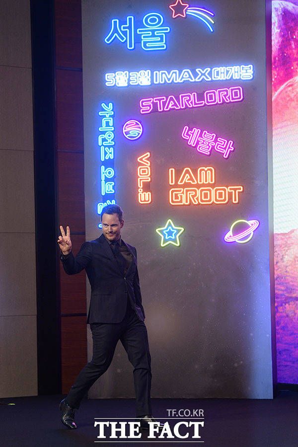 [더팩트ㅣ남윤호 기자] '가디언즈 오브 갤럭시:볼륨3'의 배우 크리스 프랫이 18일 오전 서울 영등포구 콘래드 서울에서 열린 프레스 컨퍼런스에 참석해 포즈를 취하고 있다.