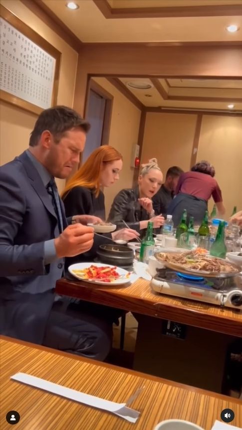 크리스 프랫은 한국을 찾은 직후부터 자신의 SNS를 통해 한국에서의 일상을 공유했다. 특히 불고기와 육회를 먹는 영상을 올리면서 매우 만족스러워했으며, 호텔 방에 누군가가 전해준 자개함을 보고는 아내인 캐서린 슈워제네거에게 잘 전달하겠다고 언급하기도 했다.