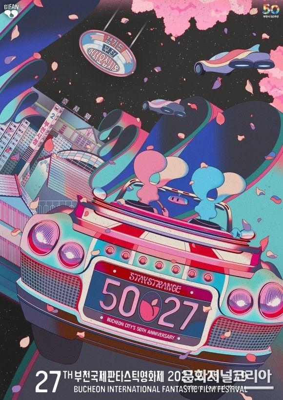 BIFAN 사무국은 “공개된 포스터에서 차량의 번호판에 담긴 숫자 ‘5027’은 올해로 50주년을 맞이한 부천시와 27회 영화제를 앞둔 BIFAN의 동행을 의미한다”면서 “영화제 심볼인 환상세포는 시간 여행자 토끼의 모습으로 표현, 환상세포 친구들이 부천시를 향해 떠나는 모습을 보여준다”고 밝혔다.