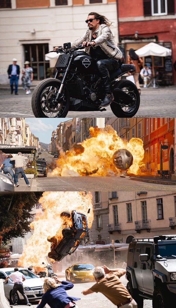 빌런이 강력한 만큼 스케일도 커졌다. 로마와 리우 데 자네이루, 포르투갈, 런던 다양한 로케이션들을 오가는 카체이싱 액션이 압권이다. 전작보다 CG 비중을 줄이고 스턴트 액션을 강화해 생생함을 높인 장면들이 눈에 띈다. 특히 단테가 처음 패밀리를 함정에 빠뜨린 로마 도심에 굴러다니는 초대형 구형 폭탄을 설치해 투척하고, 인명피해를 막기 위해 돔과 아내 레티를 비롯한 패밀리가 자동차와 트럭, 오토바이를 총동원해 막아내는 초반부 액션 장면은 이 영화의 단연 백미다. CG 없이 오로지 로케이션 촬영으로 현실감을 극대화했다는 설명이다.