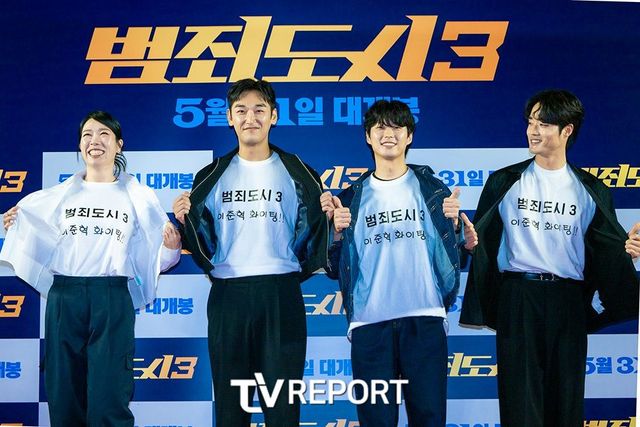 [TV리포트=오민아 기자] 배우 염혜란, 강신효, 안동구, 이하율이 22일 오후 서울 강남구 메가박스 코엑스에서 진행된 영화 ‘범죄도시3’(감독 이상용) VIP 시사회에서 포즈를 취하고 있다.