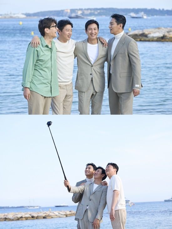 그들의 미소에서 영화의 첫 공개를 앞둔 설렘과 고스란히 느껴진다. 또 칸 경험자답게 여유로운 미소와 포즈로 취재 열기에 화답하는 이선균과 주지훈, '천만 브라더스'의 모습이 훈훈함을 자아낸다.