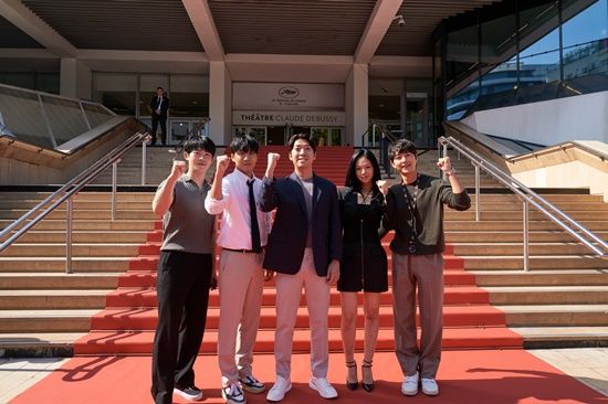 턱시도 차림으로 등장한 홍사빈과 송중기, 김창훈 감독, 그리고 매혹적인 블랙 드레스로 이목을 집중시킨 김형서는 각국 취재진들의 플래시에 여유로운 미소로 화답하며 칸의 밤을 물들였다.