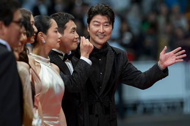 배우 송강호는 제76회 칸 국제영화제 여우주연상 시상자로 무대에 올랐다. /㈜바른손 제공