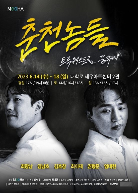 '춘천놈들'에는 김호창, 최이재, 최광남, 김남호, 엄대현, 권형준 등 총 6명의 배우가 이름을 올렸다. 김호창은 '푸른거탑'의 싸이코 상병, 뮤지컬 '그날들' 등으로 인지도를 쌓았으며, 최이재는 '나쁜자석', '옥탑방고양이', '쉬어매드니스' 등에 출연하며 연기력을 인정받았다.