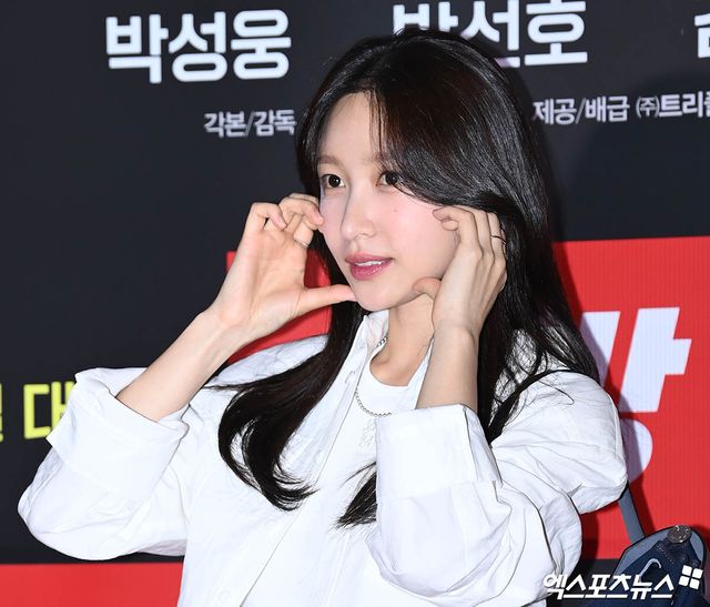 이날 VIP 시사회에 참석한 배우 안희연(EXID 하니)이 포토타임을 갖고 있다.