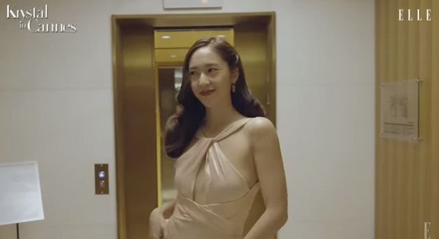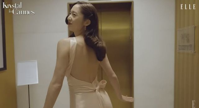 칸 영화제에서 정수정이 선보인 드레스는 가슴과 등 부분이 과감하게 드러난 스킨 톤의 새틴 드레스다. 정수정은 “뒤가 포인트”라며 뒤태를 뽐내는 것으로 한층 고혹적인 매력을 발산했다.