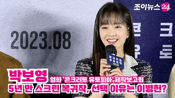 [조이뉴스24 문수지 기자] 배우 박보영이 지난 21일 오전 서울 광진구 자양동 롯데시네마 건대입구점에서 열린 영화 '콘크리트 유토피아'(감독 엄태화) 제작보고회에 참석해 소감을 말하고 있다.