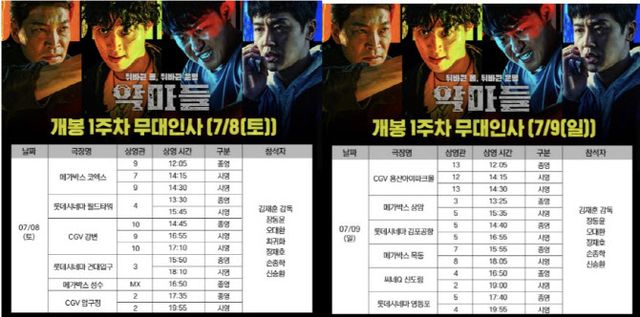‘악마들’ 무대인사에 대한 자세한 사항은 각 극장 홈페이지 PC와 모바일 앱을 통해 확인할 수 있다.