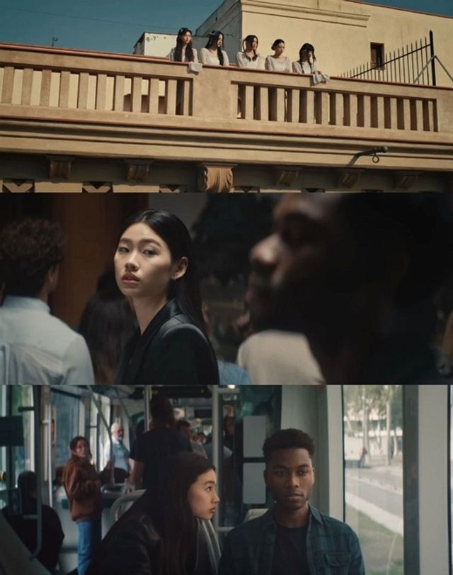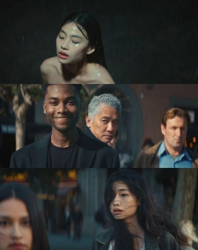 우선 뉴진스는 수호 천사로 등장한다. 이들의 시선 끝에는 에로스로 분한 정호연이 있다. 그가 에로스라는 것은 빗속에서 우산을 쓰고 등장해 여러 인간들을 따라다니며 사랑을 이어주는 장면에서 알 수 있다.