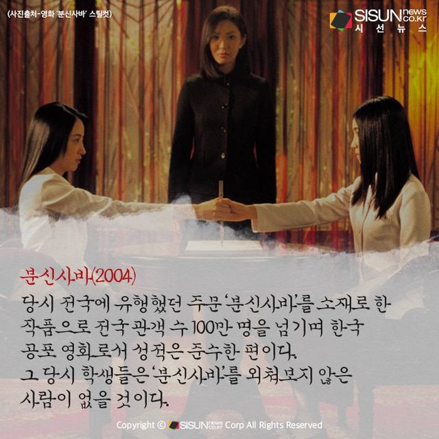 당시 전국에 유행했던 주문 ‘분신사바’를 소재로 한 작품이다. 전국 관객 수 100만 명을 넘기며 한국 공포 영화로서 성적은 준수한 편이다.