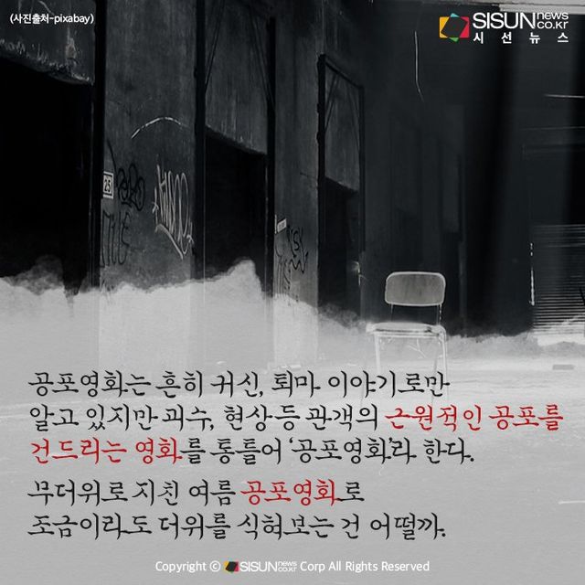 공포영화는 흔히 귀신, 퇴마 이야기로만 알고 있지만 괴수, 현상 등 관객의 근원적인 공포를 건드리는 영화를 통틀어 ‘공포영화’라 한다. 외국의 공포영화들과는 다르게 한국의 스토리는 대부분 권선징악으로 끝나는 경우가 많으며 우리나라의 토속신앙, 설화들과 관련한 영화들이 많이 있다. 이는 한국인들의 토속신앙 등에 대한 이해도를 기반으로 한국 관객의 호응을 더 잘 이끌어 내는 경향이 있다. 폭염과 장마가 번갈아가며 지속되는 가운데 공포영화로 조금이라도 더위를 식혀보는 건 어떨까.