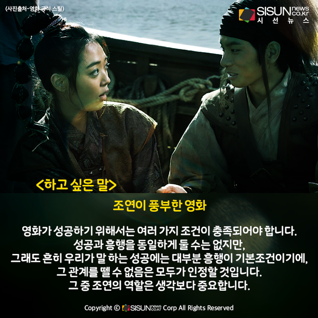 영화가 성공하기 위해서는 여러 가지 조건이 충족되어야 합니다. 성공과 흥행을 동일하게 둘 수는 없지만, 그래도 흔히 우리가 말 하는 성공에는 대부분 흥행이 기본조건이기에, 그 관계는 뗄 수 없음은 모두가 인정할 것입니다. 그 중 조연의 역할은 생각보다 중요합니다. 과거 스타 주연에만 우리의 미디어가 의존했다면 점차 조연과 주변 조건들로 영역이 넓어지고 있습니다. 조연이 풍부한 영화, 해적에서 살펴볼 수 있습니다.