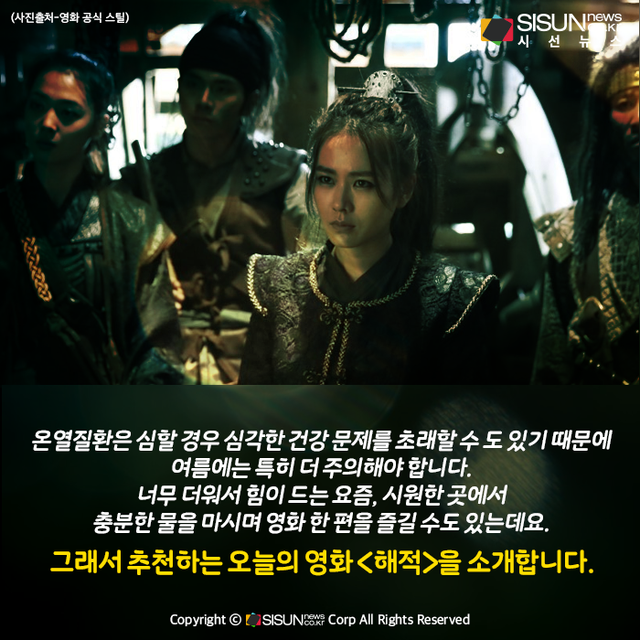 최근 기록적 폭염으로 인해 인명사고까지 발생하고 있습니다. 우리나라를 비롯해 전 세계가 폭염에 시달리고 있는 상황. 더운 날씨에 온열질환자도 잇따라 발생해 소방 당국도 분주하게 움직이고 있습니다. 온열질환은 심할 경우 심각한 건강 문제를 초래할 수 도 있기 때문에 여름에는 특히 더 주의해야 합니다. 너무 더워서 힘이 드는 요즘, 시원한 곳에서 충분한 물을 마시며 영화 한 편을 즐길 수도 있는데요. 그래서 추천하는 오늘의 영화 <해적>을 소개합니다.