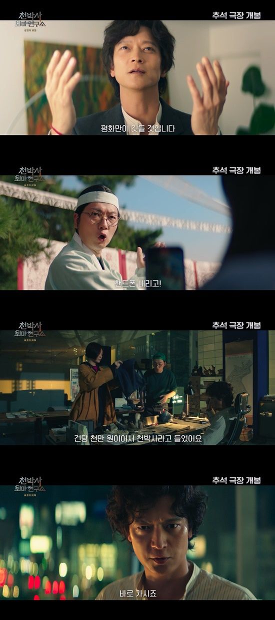 특히 정체불명의 상대에 맞서는 천박사의 화려한 액션부터 이색적인 공간에서 느껴지는 신선한 볼거리는 올 추석 전 세대가 함께 즐길 풍성한 재미를 선사할 것이다. 한편 짧은 등장만으로 강력한 존재감을 발산하는 범천(허준호)은 정체를 궁금케하며 궁금증을 높인다.