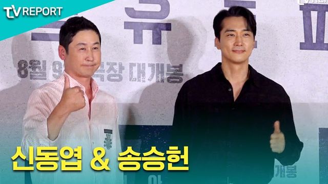 [TV리포트=오민아기자] 개그맨 신동엽과 배우 송승헌이 8일 오후 서울 송파구 롯데시네마 월드타워에서 열린 영화 ‘콘크리트 유토피아’(감독 엄태화) VIP 시사회에서 포즈를 취하고 있다.