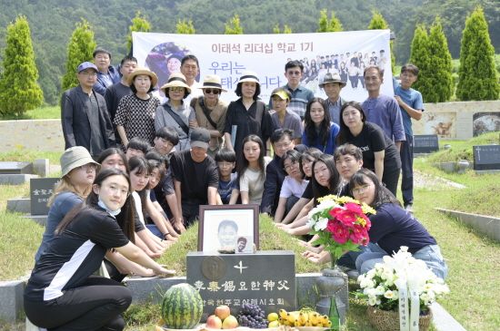 (엑스포츠뉴스 김현정 기자) 영화 '부활'의 구수환 감독이 이태석 리더십학교 1기생과 전남 담양의 이태석 신부 묘소를 찾았다. 1기생은 모두 25명으로 지난 6월부터 이태석의 정신을 8주 동안 배운 중 고등학생이다.