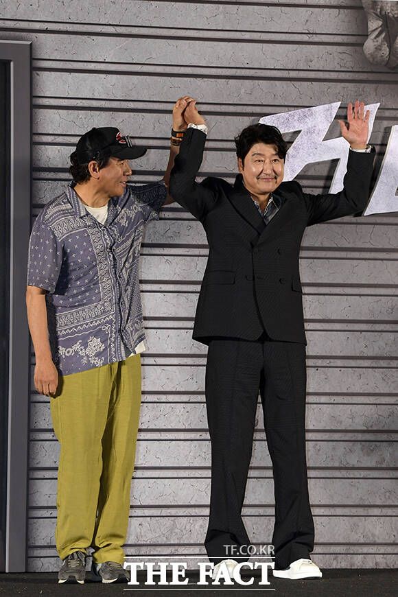 1970년대 배경의 '거미집'은 다 찍은 영화 ‘거미집’의 결말만 바꾸면 걸작이 될 거라 믿는 김 감독(송강호)이 바뀐 내용을 이해하지 못하는 배우와 제작자, 심의에 걸리는 대본 등 악조건 속에서 촬영을 밀어붙이는 이야기를 유쾌하게 그리는 작품이다. 다음 달 27일 개봉 예정.