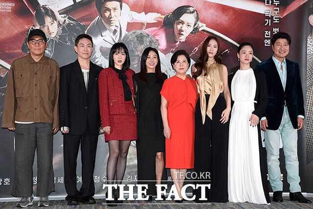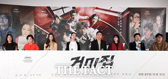 배우 장영남과 박정수, 정수정, 전여빈, 오정세, 임수정, 송강호, 김지운 감독(왼쪽부터)가 뭉친 '거미집'은 9월 27일 개봉한다. /서예원 인턴기자