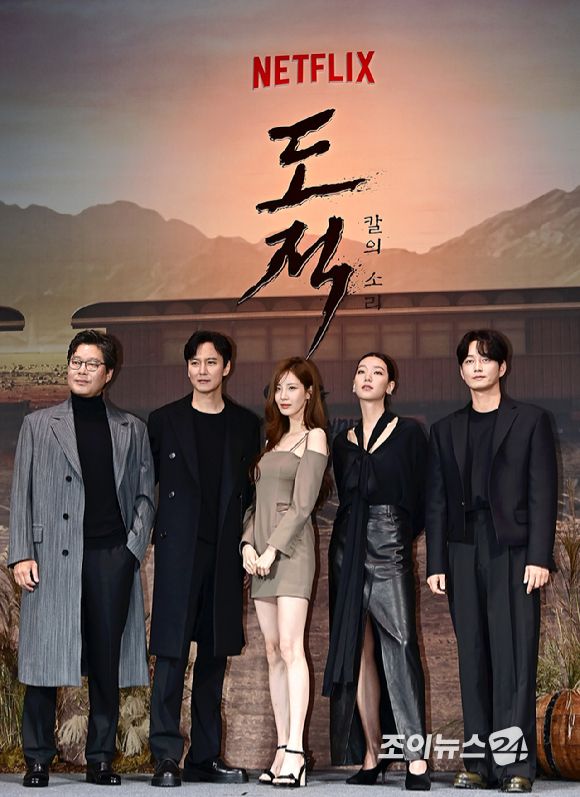 김남길은 19일 오전 서울 중구 앰배서더 서울 풀만 호텔에서 진행된 넷플릭스 시리즈 '도적: 칼의 소리'(감독 황준혁, 박현석) 제작발표회에서 이호정에 대해 "이렇게 말해도 될지 모르겠지만 호정이 연기를 보면 신선하다"라고 말했다.