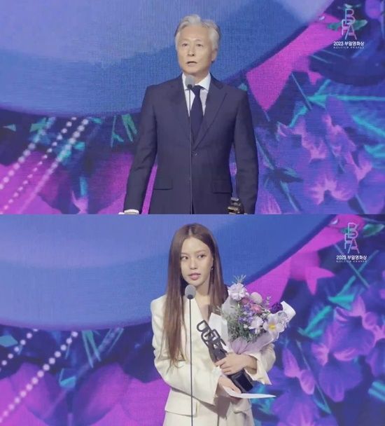 (엑스포츠뉴스 부산, 김유진 기자) 2023 부일영화상 시상식에서 이병헌과 김서형이 남녀주연상을 수상했다. 작품상은 '콘크리트 유토피아'(감독 엄태화)에게 돌아갔다.