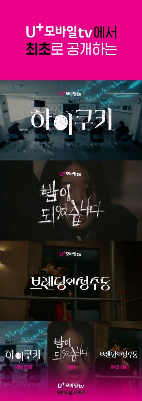 [파이낸셜경제=김영란 기자] 10월 23일 공개 예정인 U+모바일tv의 첫 오리지널 드라마 남지현X최현욱X김무열X정다빈이 출연하는 ‘하이쿠키’, 그리고 STUDIO X+U가 제작하는 드라마인 스릴러 ‘밤이 됐습니다’(이재인X김우석 출연)와 로맨스릴러 ‘브랜딩 인 성수동’(김지은X로몬 출연) 하이라이트 영상이 제28회 부산국제영화제 행사장에서 최초로 베일을 벗는다.
