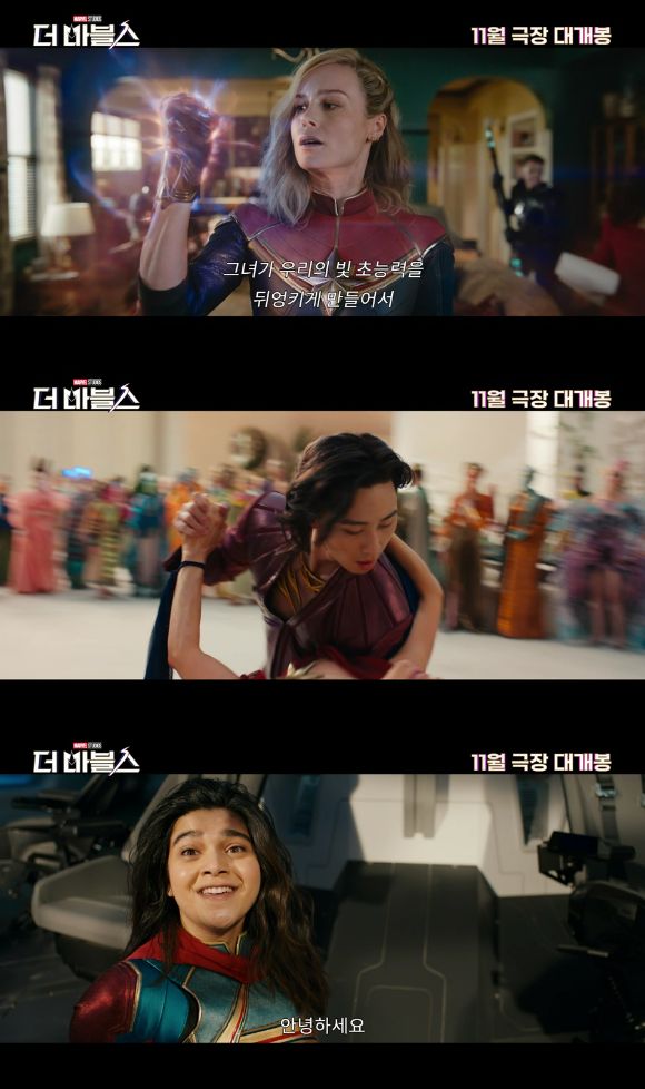 한편 더 마블스는 우주를 지키는 히어로 캡틴 마블 캐럴 댄버스가 능력을 사용할 때마다 모니카 램보, 미즈 마블 카말라 칸과 위치가 바뀌는 위기에 빠지면서 뜻하지 않게 새로운 팀플레이를 하게 되는 히어로 액션 블록버스터다. 배우 박서준이 캡틴 마블의 남편 얀 왕자 역을 맡아 화제가 됐다.